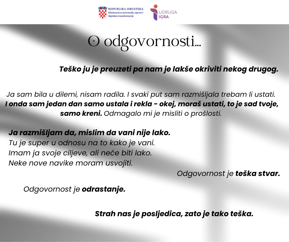 Sadržaj ove objave u isključivoj je odgovornosti Udruge Igra i ne može se smatrati odrazom stajališta Ministarstva pravosuđa, uprave i digitalne transformacije.