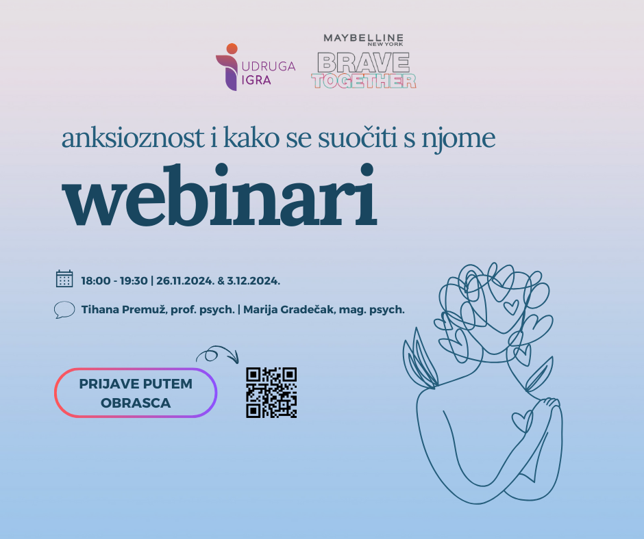 Besplatni webinari na temu anksioznosti održavaju se u sklopu kampanje Brave Together koju Udruga Igra provodi već četvrtu godinu za redom u suradnji s tvrtkom Maybelline New York.